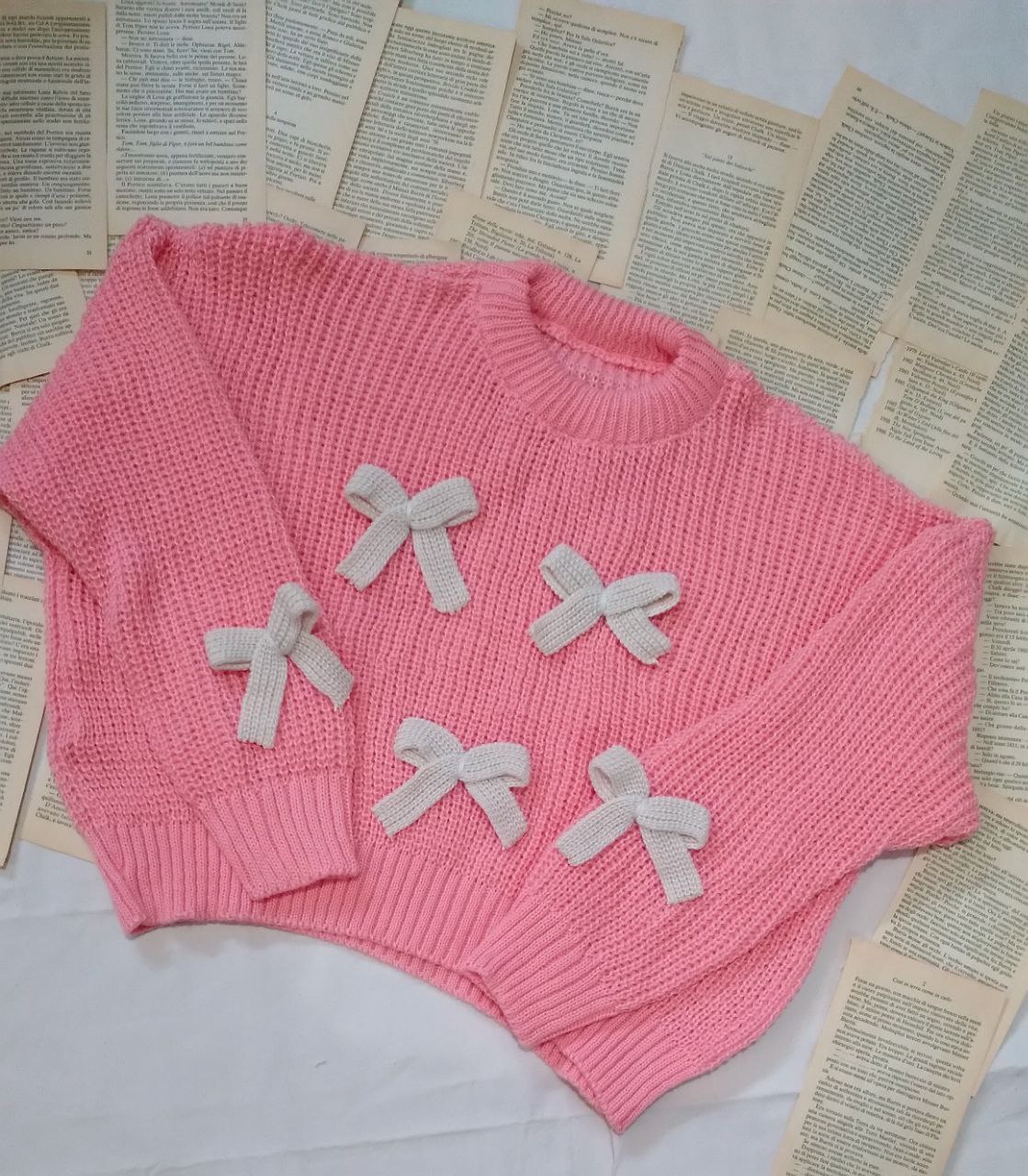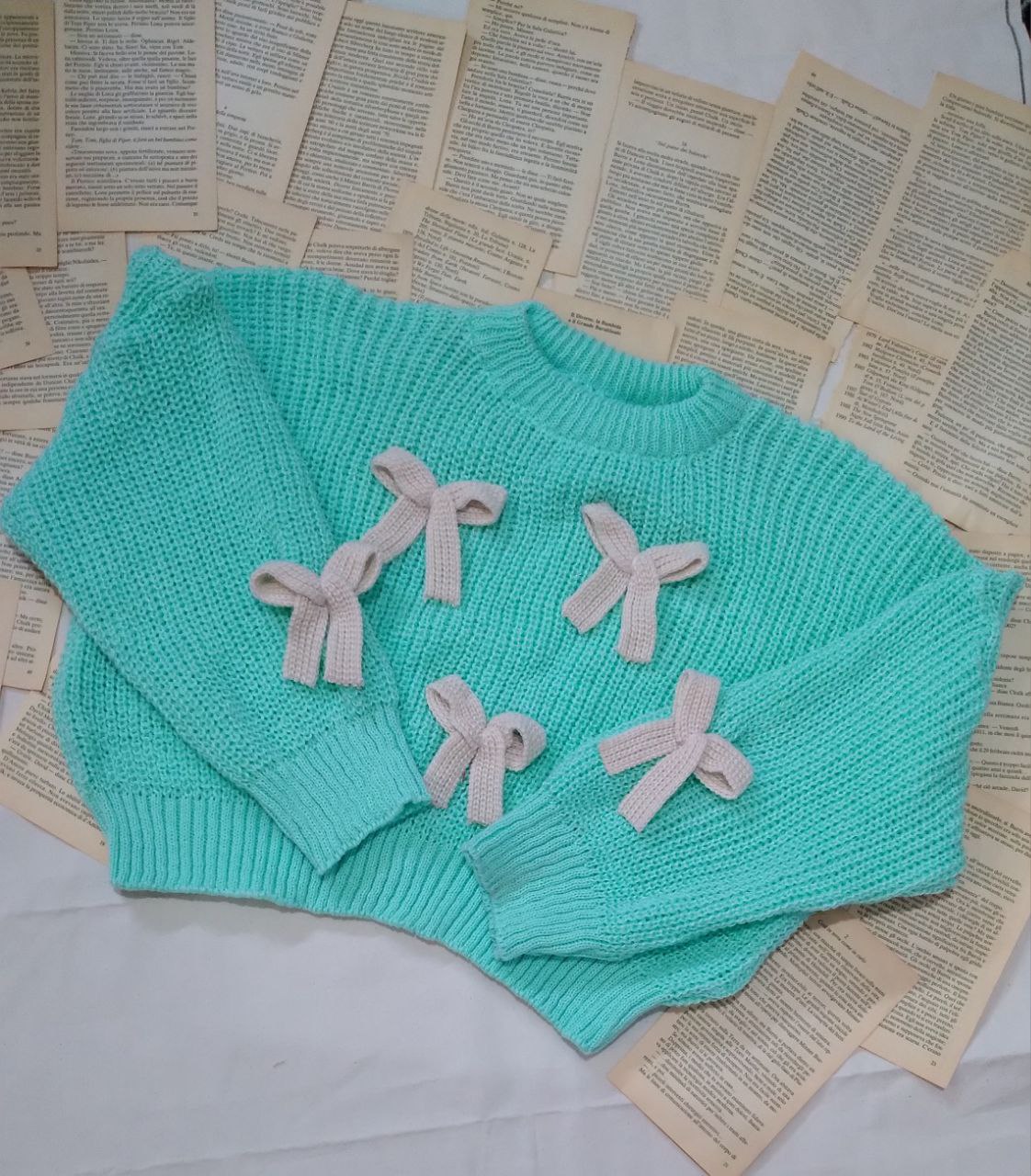 – الگوی تاپ/بلوز بافت کراپ که روی سینه یا جلوی کار پاپیون بافتی دارد